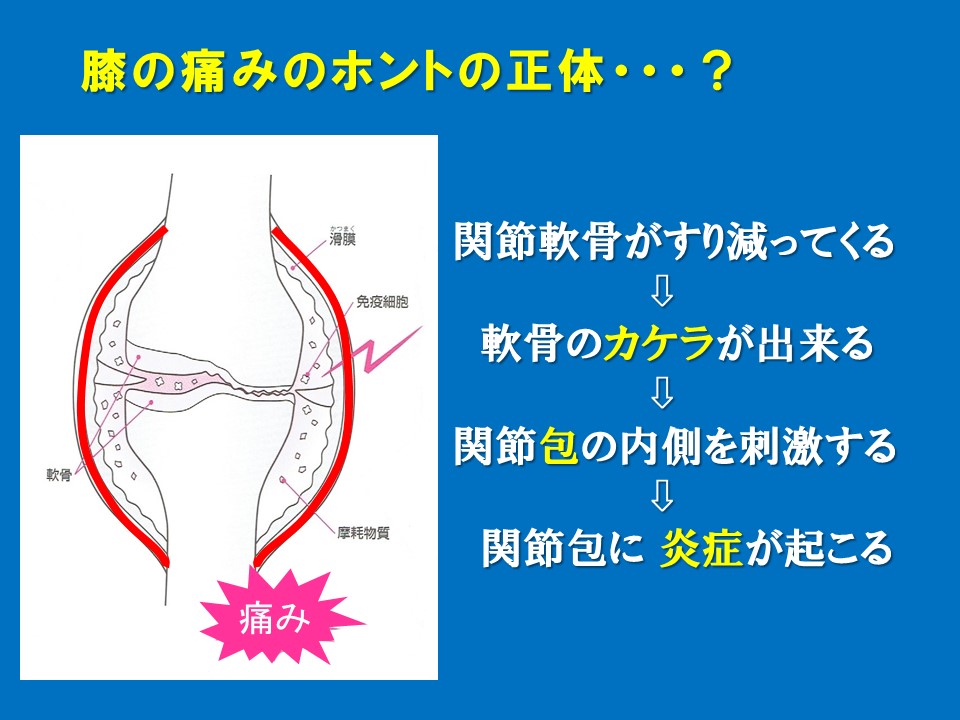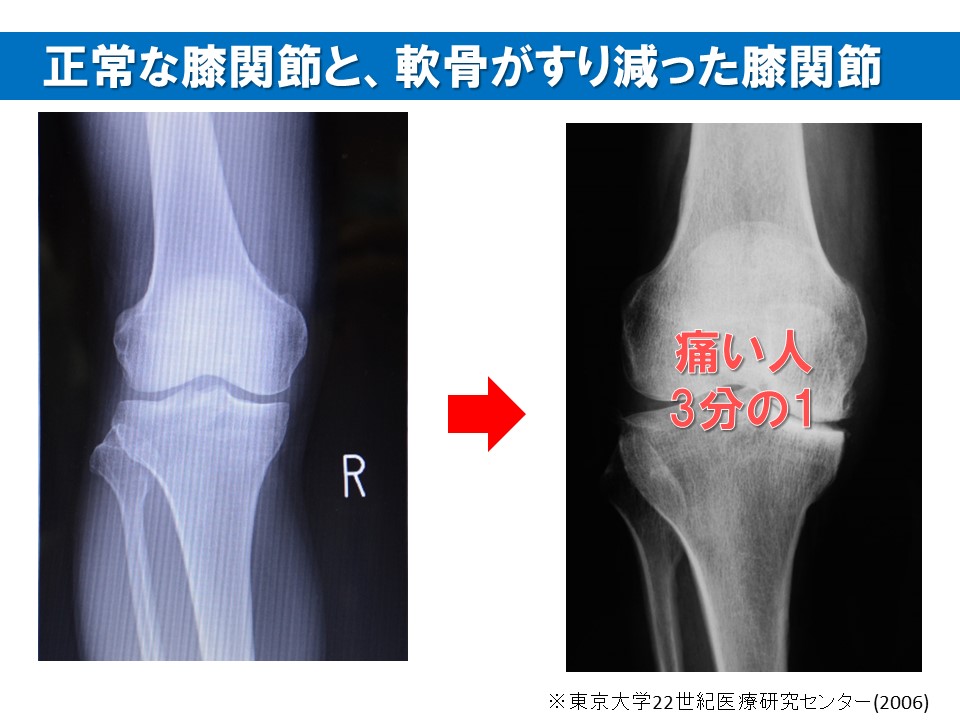 - 軟骨がすり減ったら、膝痛になるのかと言えば、必ずそうじゃないということです。