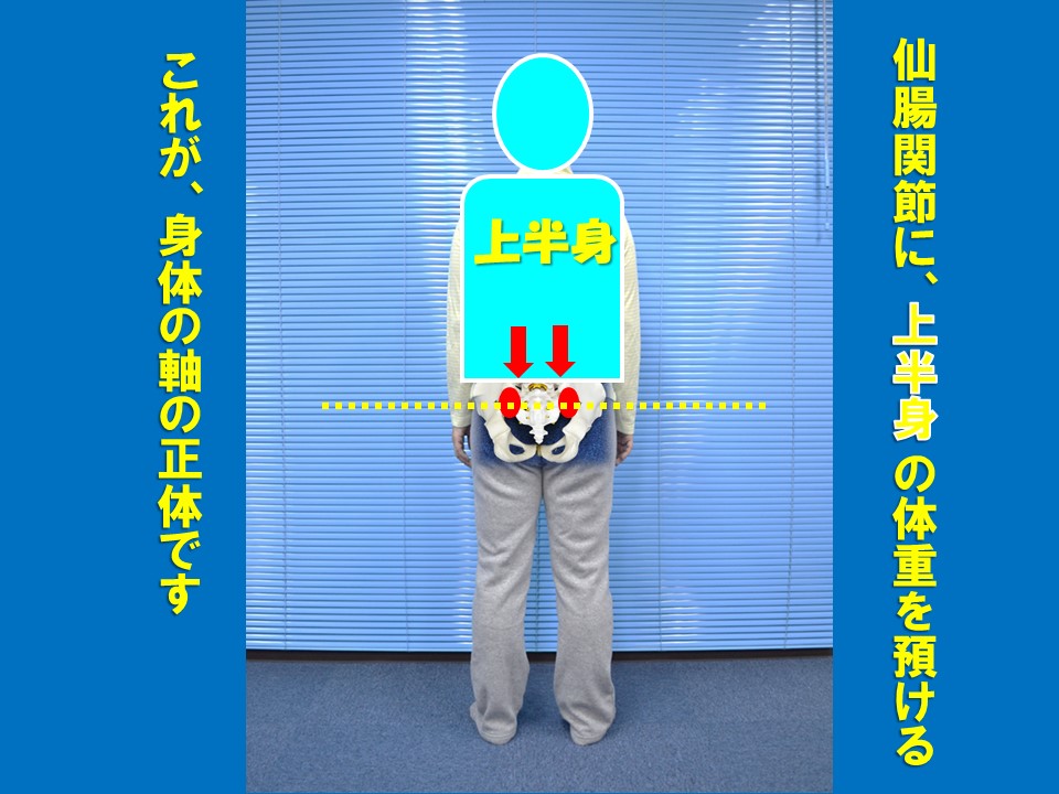 上半身の体重を、この仙腸関節で受け止める、感覚で立ってください。