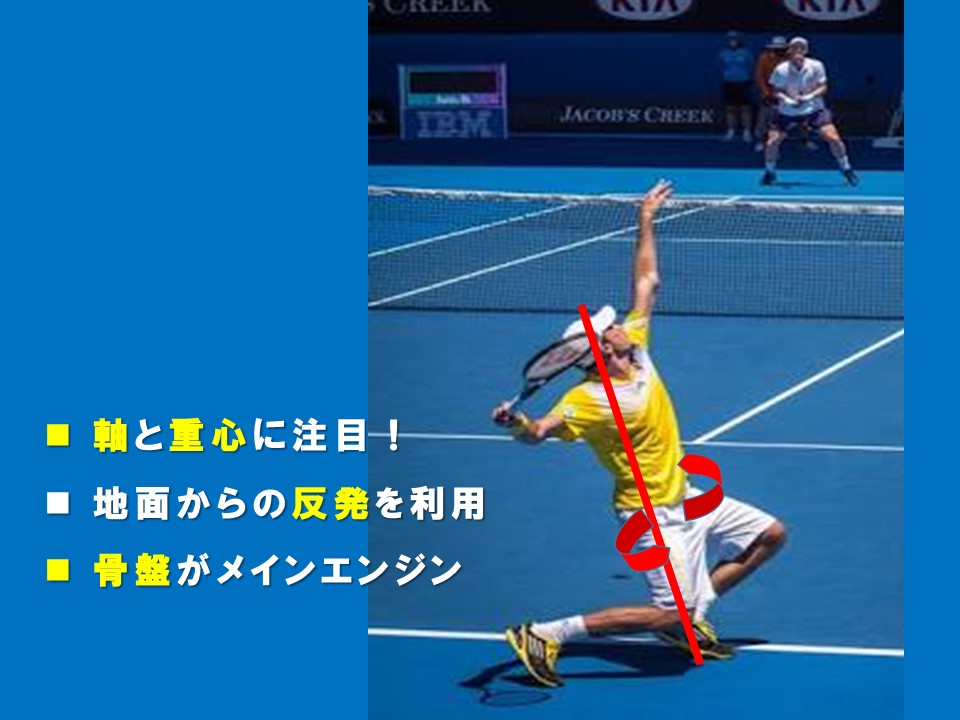 テニスでは、骨盤を始動して、ラケットが振られていました。